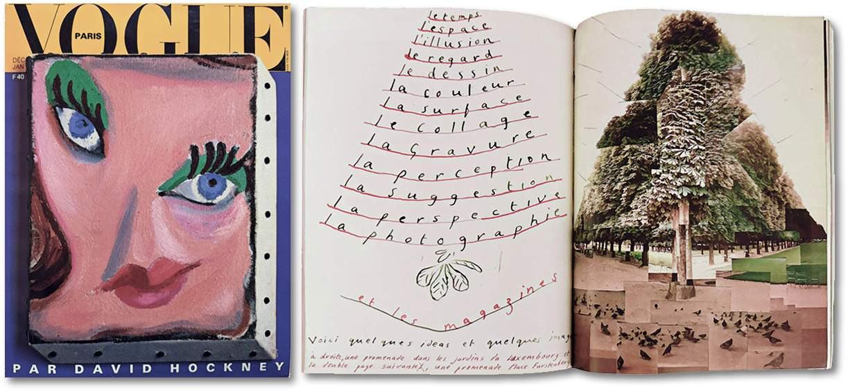 Hockney guest-edited the Dec ‘85/Jan ‘86 issue of French Vogue with a 35-page spread lavishly demonstrating how his recent discoveries in photography and reproduction had begun to influence his painting. Comparisons to the early cubists were undeniable.