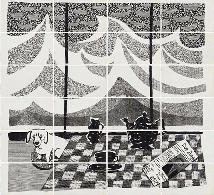 Hockney Reproduction is an exhibition opening in September at Manship Artists Residency. It has been decades in the making. This is the first in a series of essays by Bing McGilvray to be published here in the coming months on the artwork of David Hockney. Bing will elaborate on how each piece in the show represents a different phase in Hockney’s oeuvre. He will also discuss his long friendship with the renowned artist, which continues to this day.