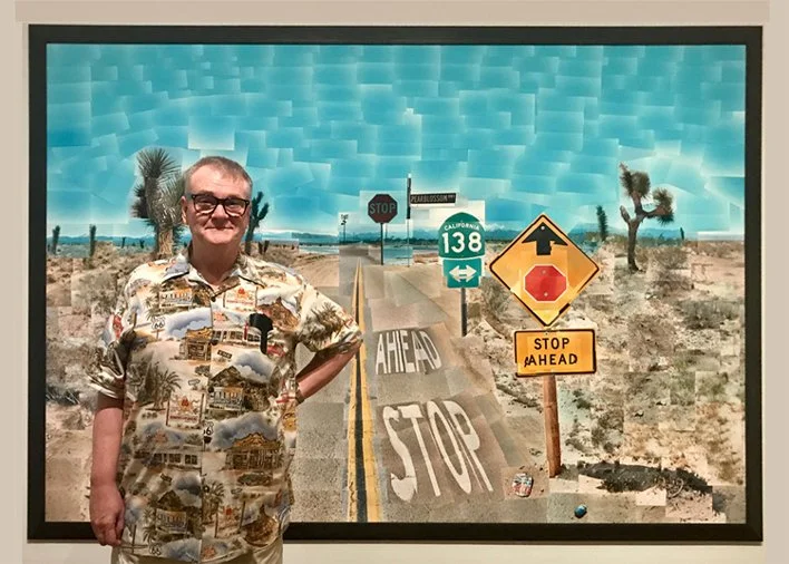 Moving on, he started combining individual Polaroids, then “snaps” processed at the local One Hour Photomat. The finished collages kept expanding, growing bigger. David knew he was on to something. These experiments culminated in Pearblossom Highway, composed with over 800 individual photos, and his book Cameraworks published in 1984.